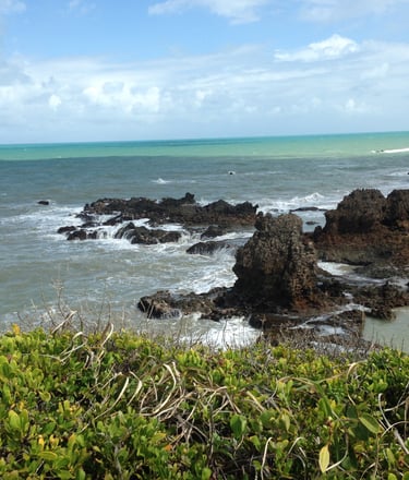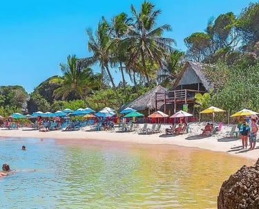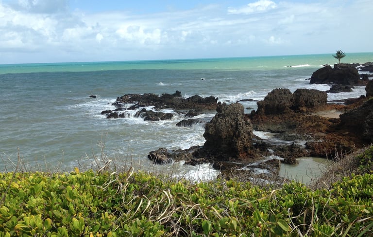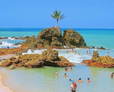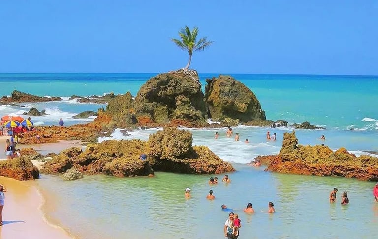Piscinas naturais: formadas por rochas na maré baixa, perfeitas para banho tranquilo.